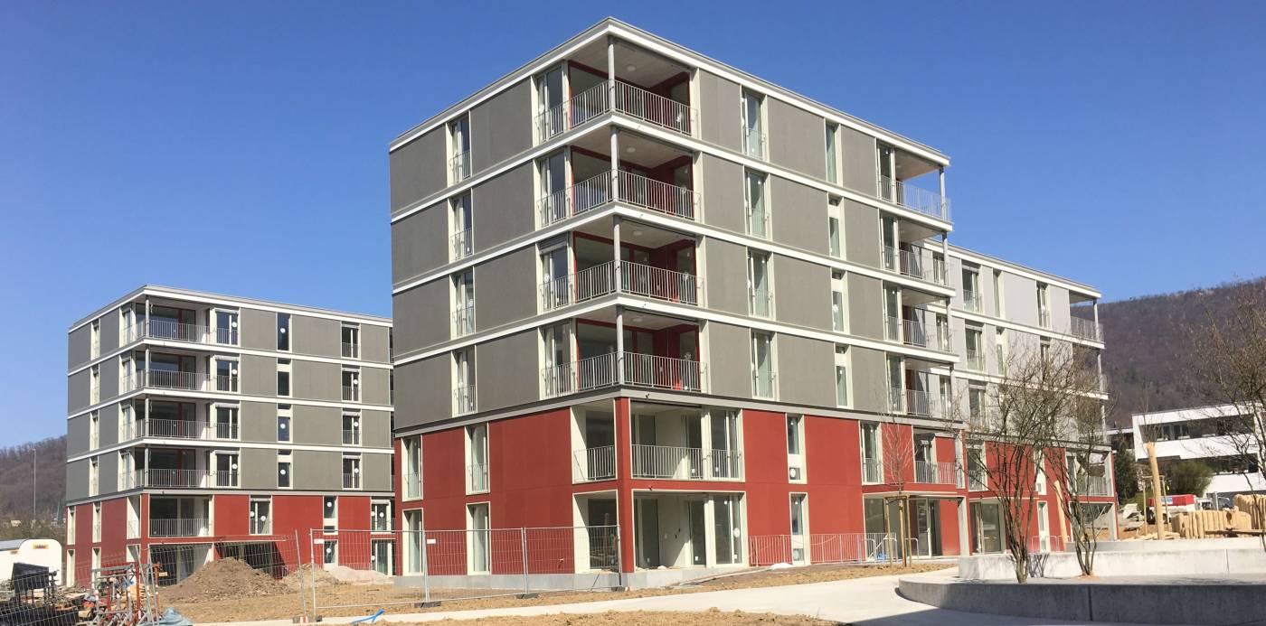 Zwischen den bestehenden und den Neubauten wurde die ca. 110 Meter lange Tiefgarage gebaut, welche sowohl die Neubauten als auch den Bestandbau erschliesst. Die vier 6-stöckigen Wohngebäude und die Tiefgarage konnten mittels Flachfundation ausgeführt werden.