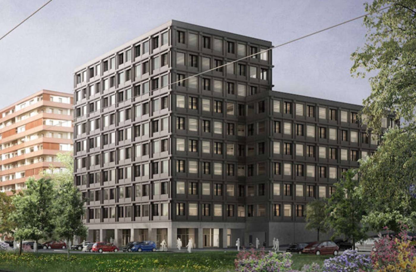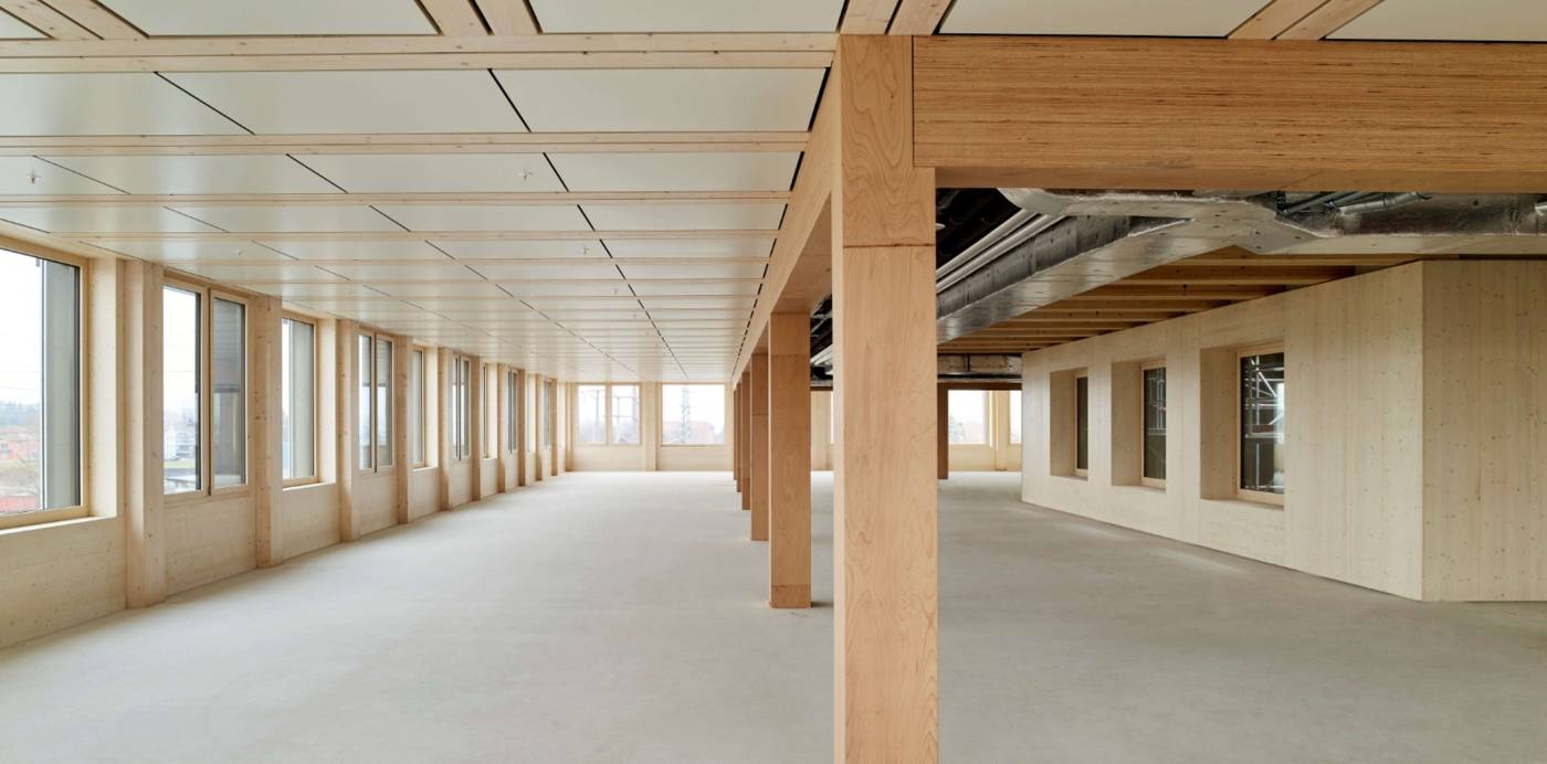 Unter- und Erdgeschoss werden in Massivbauweise gebaut. Ab dem ersten Obergeschoss besteht das Tragwerk aus zwei Betonkernbereichen, welche die Horizontalaussteifung leisten, sowie aus Pendelstützen aus Holz und Holz-Beton-Verbunddecken.