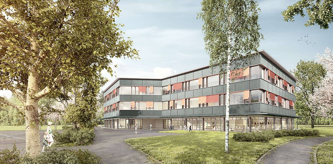 Neubau eines Schulhauses im westlichen Teil des Areals der Schulanlage Volksschule Marzili. Das neue Gebäude umfasst elf Klassenzimmer mit Gruppenräumen, fünf Räume für den Fachunterricht sowie eine Tagesschule für 100 Kinder und zugehörige Nebenräume. Das dreistöckige Gebäude ist ein Hybridbau aus Massiv- und Holzbau. Die Treppenkerne, alle Decken sowie die Fassadenstützen im EG wurden in Sichtbeton (RC-C) errichtet. Ab dem 1. OG übernehmen die Holzbau-Fassaden auch tragende Funktion. Die Fundation in dem schwierigen Baugrund wird von Ortbeton-Verdrängungsbohrpfählen übernommen.